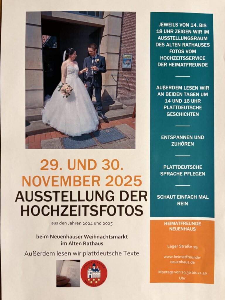 Zum diesjährigen Weihnachtsmarkt in Neuenhaus zeigen die Heimatfreunde Neuenhaus Hochzeitsfotos vom Hochzeits-service aus den Jahren 2024 & 2025.